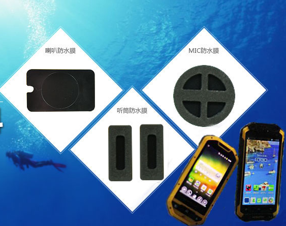 全身防水的防水手機, 以防止在下雨時或掉入水中時手機被損壞。大部分對講機要求在各種天氣情況下都可以使用以適應各種不同的應用場合。同時,又要確保聲音傳輸品質不會被影響。專門為防水手機和對講機行業研發和設計的聲音傳輸防護產品在確保防水手機和對講機防護的同時,不會影響麥克風和耳機部位聲音的傳輸品質。 用于防水手機和對講機行業的防護產品根據不同的終端需求,產品形式主要為帶背膠產品。